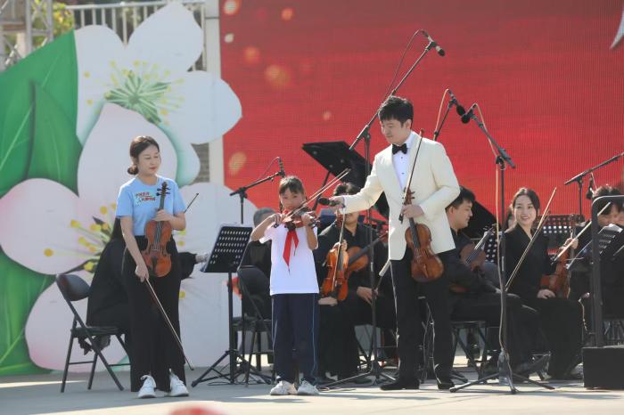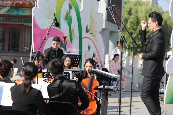 秋风徐徐,在平谷区世纪广场,3000余名师生与著名小提琴家刘霄及乐手携手演奏,为观众带来了一场美妙激昂、充满爱国情怀的音乐会。