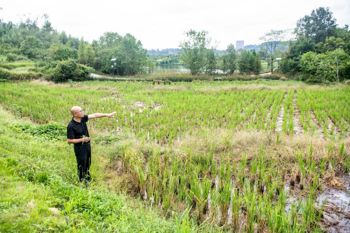 随着当地一系列生态保护修复措施的实施,双桂湖湿地栖息的鸟类数量和种类明显增长。9月26日,重庆市梁平区湿地保护中心工作人员余先怀在双桂湖国家湿地公园内查看稻田情况。公园内耕种了450亩环湖水稻田,这是冬候鸟的食物来源之一。新华社记者 唐奕 摄