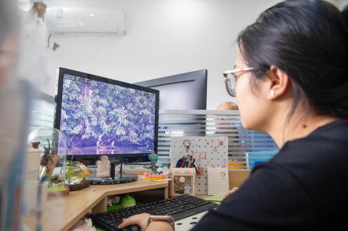 9月26日,重庆市梁平区湿地保护中心工作人员吕妮洪在保护中心内对采集数据进行整理。新华社记者 唐奕 摄
