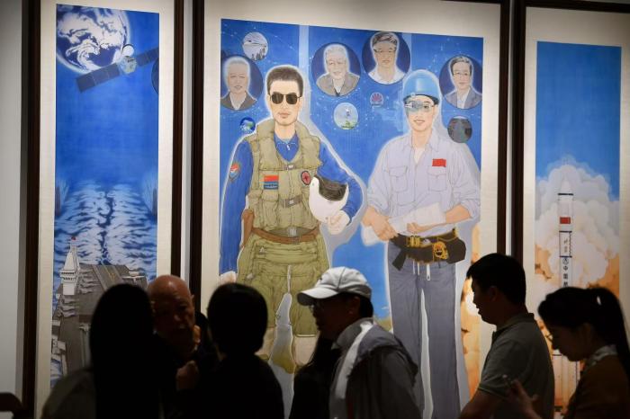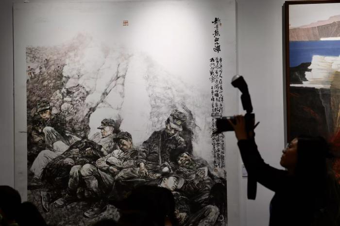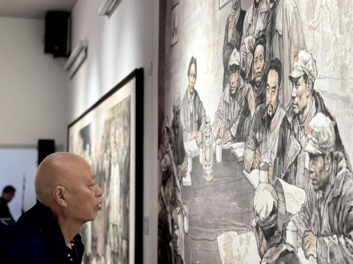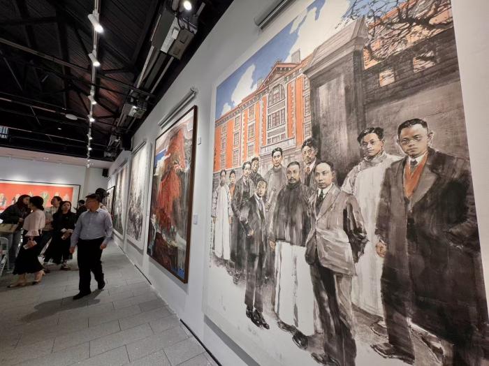 展览精选首师大美院14幅人物画、风景山水画,既有《共和国勋章》《瓦窑堡会议》等聚焦重大题材的作品,也有展现生活细节的创作,传递“家是最小国,国是千万家”的理念,让观众在艺术中接受爱国主义教育。