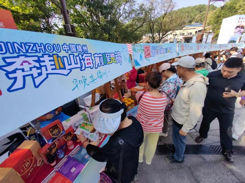 除了展馆内的展示,锦州市集也在模式口公园同步开启。沟帮子熏鸡、北镇葡萄、北镇猪蹄等特色美食,以及医巫闾山、青岩寺、大芦花景区等景区旅游资源,汇聚在辽宁锦州・北镇福礼展区。医巫闾山满族剪纸、辽西木偶戏、锦州皮影戏、锦州满族民间刺绣等极具地域特色的非遗技艺与民俗文化,也在市集精彩亮相。