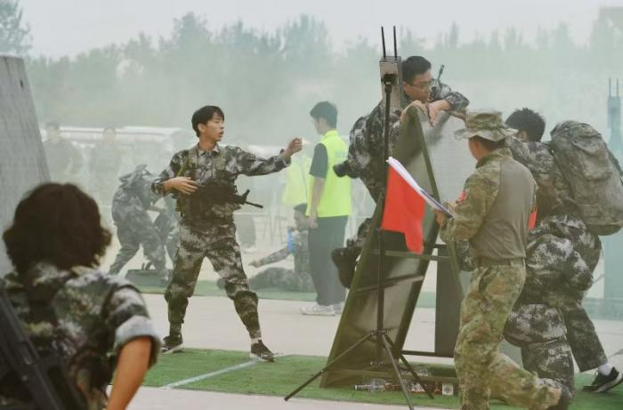 今年,技能竞赛项目创新设置“抗战场景再现”来致敬先烈,选手们需屈身通过模拟战壕,延续阵地战的“防御与突进”,翻越坡度墙复刻游击战的“地形突破智慧”,战伤救护,践行战地医疗的“生命时速”,模拟手榴弹精准投掷,复刻攻坚战的“精准打击”,以凸显“从抗战烽火到赛场争锋”主旋律。