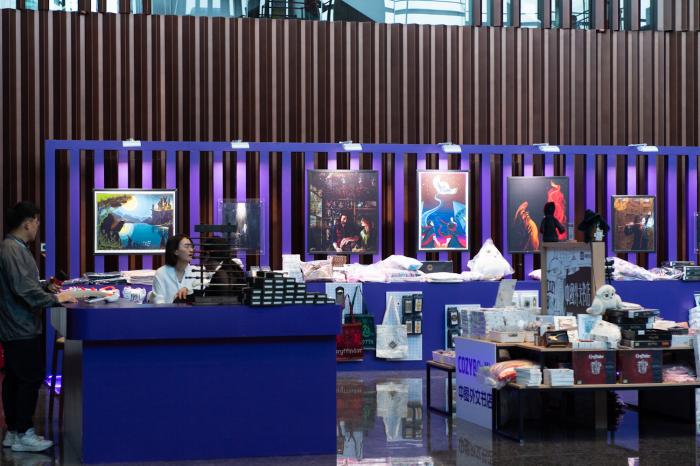 北京艺术中心二层户外平台上,推出唱片展位。
