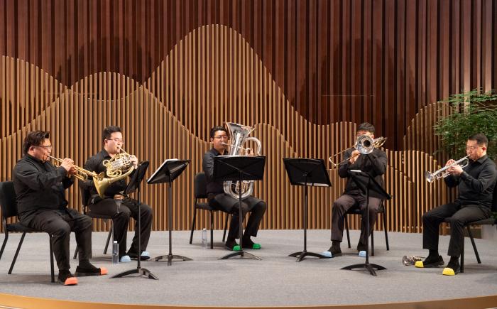 在北京艺术中心的公共空间,上演铜管五重奏。