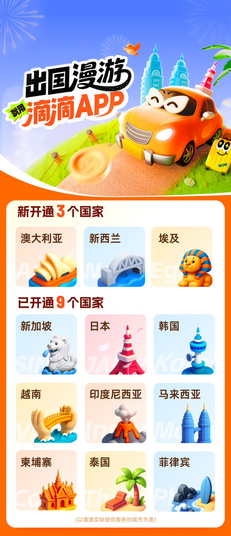 新开通澳新埃三国服务,已在12国超1000城上线海外出行