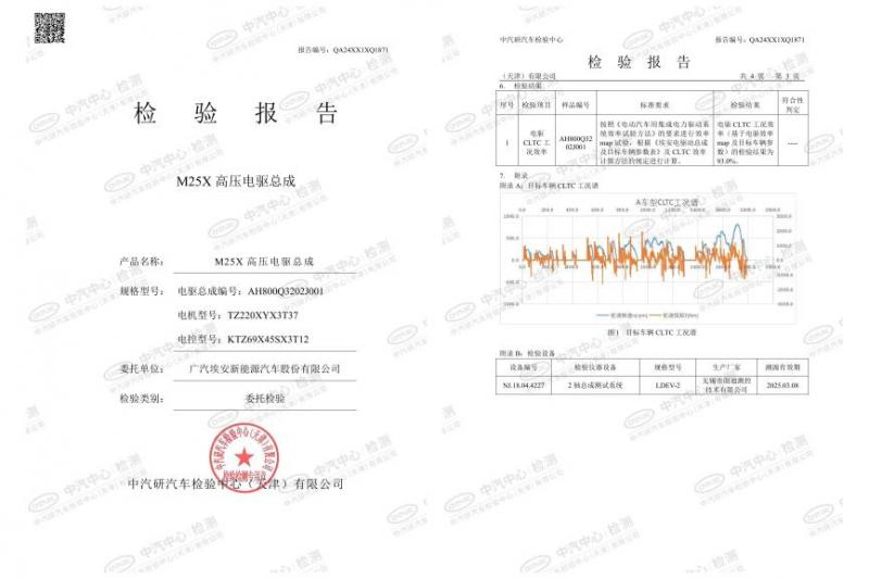 广汽夸克电驱2.0非晶-碳纤维电驱经中汽研检测电驱系统CLTC工况效率高达93%