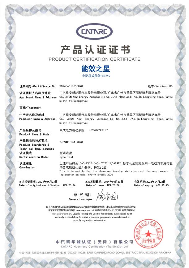广汽夸克电驱2.0非晶-碳纤维电驱荣获中汽研“能效之星”认证