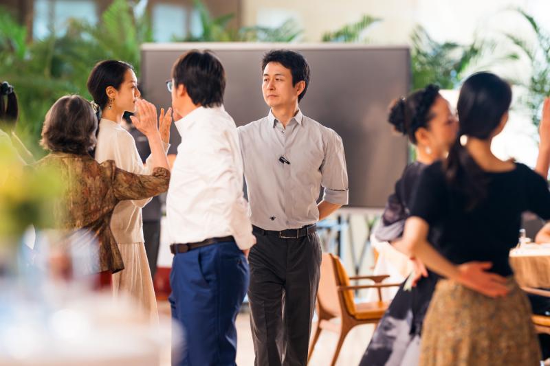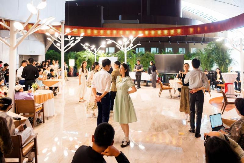 “宾利先生的舞会”沉浸式体验活动,近日在国家大剧院西餐厅举办。活动伊始,剧中宾利(奉阳饰)作为“舞会”的“筹办者”进行了开场:“女士们、先生们,欢迎光临我的‘舞会’,饮品已经准备就绪,请大家尽情地玩起来、跳起来,享受今天的快乐吧!”随后国家大剧院戏剧演员队演员王乙清(饰演伊丽莎白)、赵岭(饰演达西)、杨淇(饰演简)等沉浸式展示了剧中片段。演员们穿梭于宾客间,一会儿寻找威克汉姆军官,一会儿演绎剧中人物百态……随后,导演兼主演赵岭与编剧、舞美设计等从多角度分享了话剧创排细节。