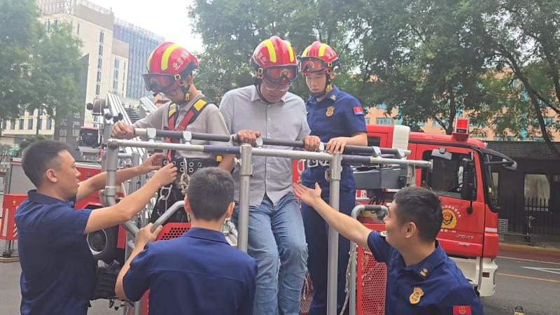活动还安排了高空项目体验。在确保安全的前提下,郅家诚和父亲体验了索降,并登上了云梯车的工作平台,感受了高空作业的环境。郅先生表示:“这些训练项目让我们直观地感受到了消防员工作的专业性和危险性。”
