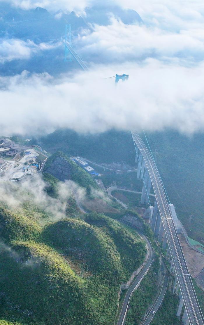 9月28日拍摄的贵州花江峡谷大桥和云渡服务区。新华社记者 欧东衢 摄