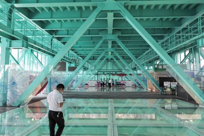 9月28日,参观者在花江峡谷大桥的玻璃观光廊道上行走。新华社记者 欧东衢 摄