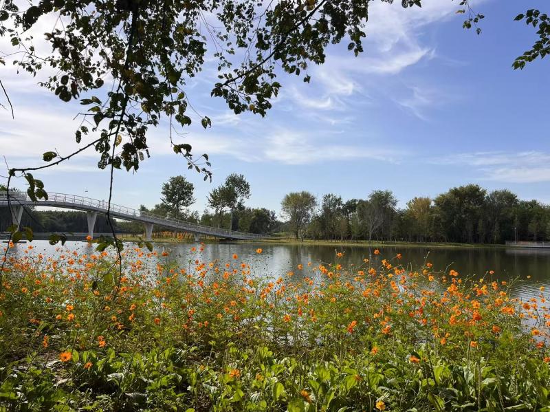 “未来,市民可以沿着水边的林荫道一路骑行,欣赏坝河最美的风景线。”朱亚雷介绍,依托6.7公里的河道老堤与新筑堤防,项目打造了26.8公里的特色双堤风景道,串联起沿线的观景平台、休闲驿站与生态节点,形成了“最美秋景”。这幅水岸休闲画卷,也让“伴着河流骑回家”的设想成为可能。此外,水面新建的3座跨河人行桥,以流线型设计连接两岸,并设有遮阳棚与休息座椅,为市民提供了舒适的漫步环境。