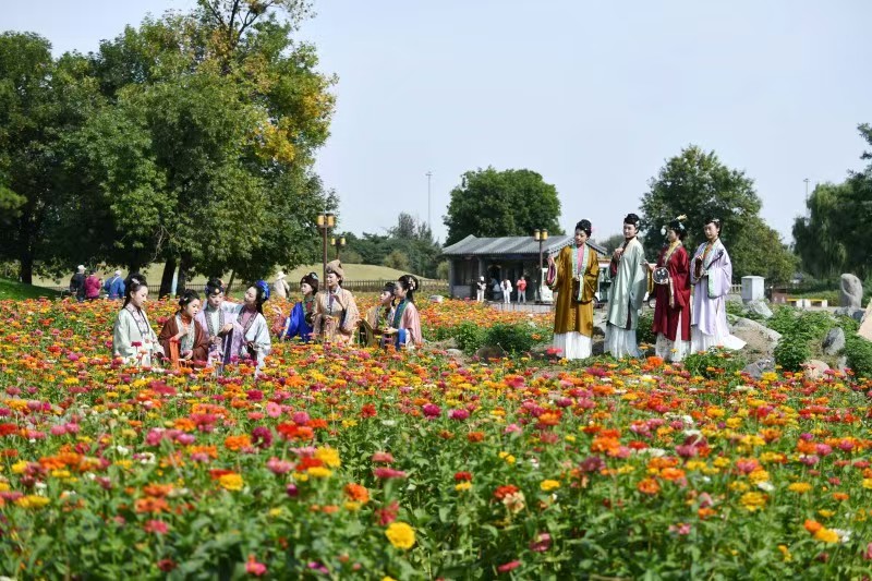 秋天来逛圆明园,不要再只去东边的大水法、西洋楼了。在园子的西边,还有一处被低估的秋日秘境——西部花海。这里有着上万平方米如油画般的花海、花带,其中,百日菊不仅耐干旱、花期长,且颜色丰富艳丽,或红或黄或紫或橘,如同大自然的调色盘。9月中下旬至10月下旬是花海的最佳观赏期,游客可从藻园门进入,向北观赏、拍照打卡。