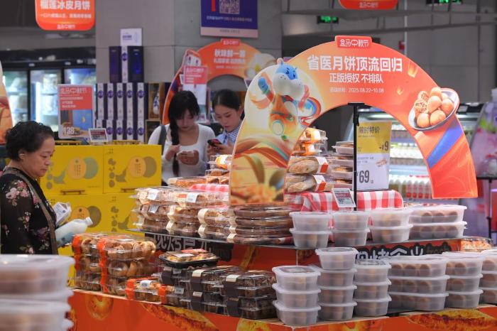 中秋临近,各式月饼扎堆摆擂台,顶流网红贵州省医云腿月饼也在盒马开售,给消费者带来新鲜感。