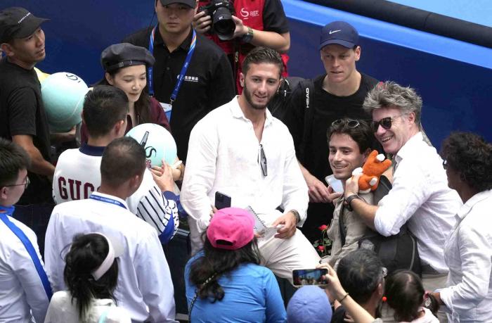 辛纳与球迷合影。