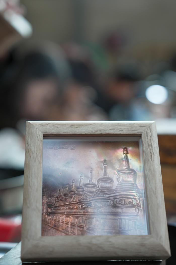 9月28日在青海省西宁市湟中区鲁沙尔镇阳坡村民族手工艺加工基地拍摄的铜摆件。新华社记者 杜笑微 摄