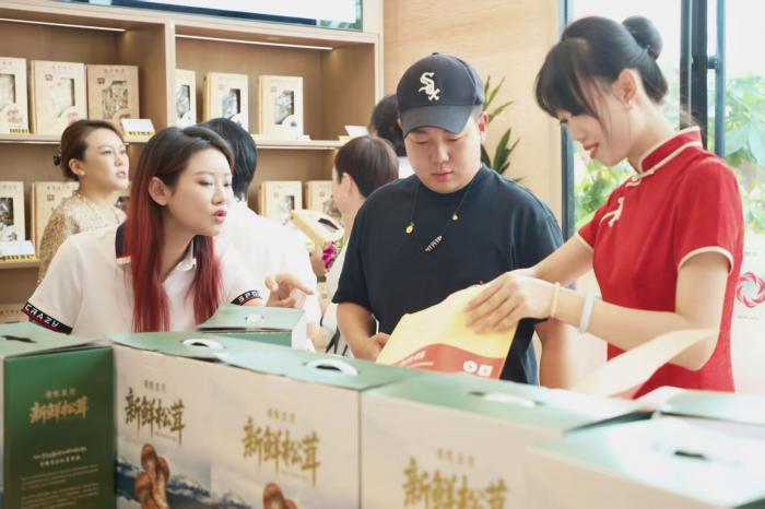 在体验中心内,云南野生菌陈列区宛如“菌菇博物馆”,新鲜松茸、牛肝菌、羊肚菌等有序陈列,每件展品均清晰标注产地溯源信息、检疫合格证明及保质期,嘉宾扫码即可查看全链条流通记录,实现“来源可查、去向可追”安全承诺的可视化呈现。