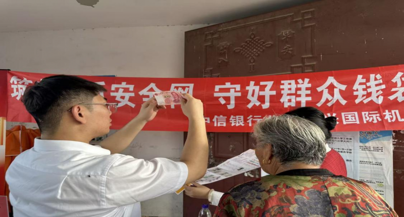 为进一步提升社会公众的假币防范意识和识别能力,维护人民币信誉和金融秩序稳定,保护广大人民群众的财产安全,中信银行北京分行积极履行社会责任,近期以“筑牢货币安全网,守好群众钱袋子”为主题,针对重点地区与重点人群,组织开展了多层次、广覆盖的反假货币宣传活动,取得了显著成效。