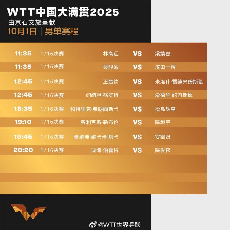 孙颖莎王曼昱女单争冠 王楚钦冲第三冠 WTT中国大满贯今日赛程