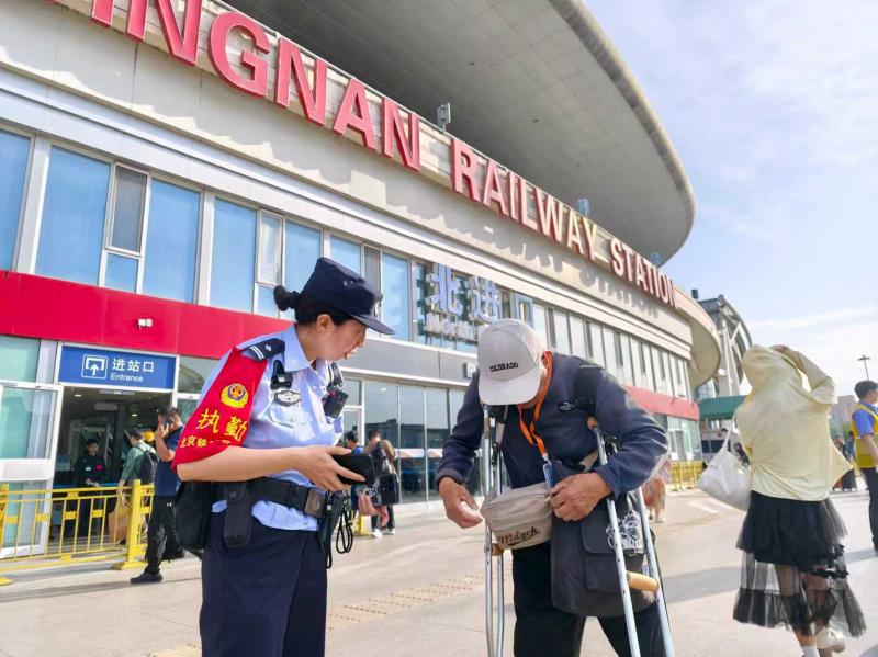 据介绍,为确保站区秩序稳定,北京铁警组织管内重点车站派出所部署警力进行高频次巡查,对站区内的黑车招揽、非法叫卖等扰序行为,坚持“露头就打”,持续净化站区环境。同时,加强对站区出站口、安检区域的管控,防止各类危险物品进站上车。在站区广场、候车大厅等人员密集区域,采取定点值守与流动巡逻相结合,及时处理各类突发情况,为旅客提供安全有序的候车环境。此外,还积极与站区周边社区、商户沟通协调,共同做好清理防范工作,形成站区整治的合力。