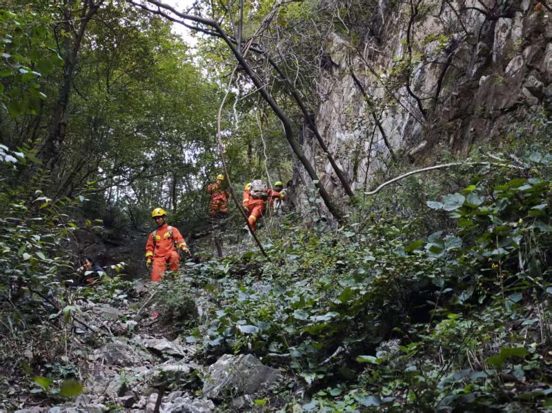 救援人员背着装备深一脚浅一脚往山里走,途中多次与被困女子通话,确认位置。15时57分,救援人员终于在一处山沟里找到两名迷路女士。两名女子都没有受伤情况。