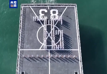 30日上午,海军83舰编队戚继光舰和沂蒙山舰在海军宿迁舰以及香港特区政府船队的引航伴航下,缓缓进入香港维多利亚港,这是两艘舰艇首次来到香港。在戚继光舰后甲板上,100余名官兵身着白色军装,列队排出“76”字样,为中华人民共和国成立76周年送上祝福,向香港市民问好。港岸上,香港市民向舰上分区列队的学员和官兵挥手致意。