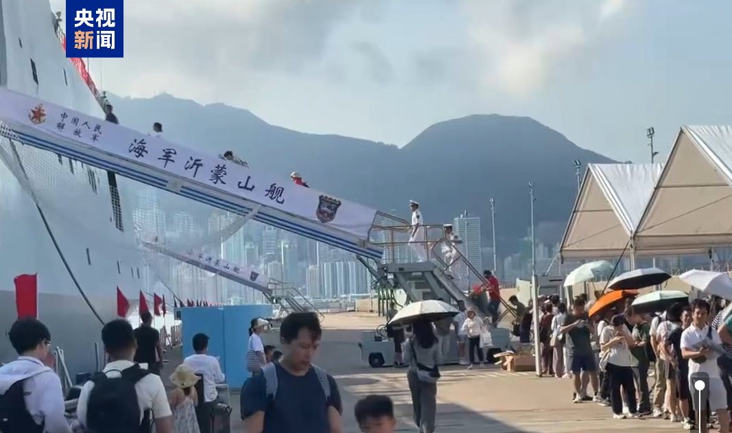 总台记者 马媛:现在我们登上了沂蒙山舰,前甲板区域主要用来展示舰载武器装备。沂蒙山舰全长210米,目前停靠在昂船洲码头西岸。我们朝北岸看,那里停靠的就是戚继光舰,从这个角度可以欣赏到整个舰的英姿。这次开放活动较之前山东舰艇编队访港时开放的区域更多,不仅开放前后甲板,舱室内的很多区域也面向公众开放。这次香港市民可以大饱眼福了。