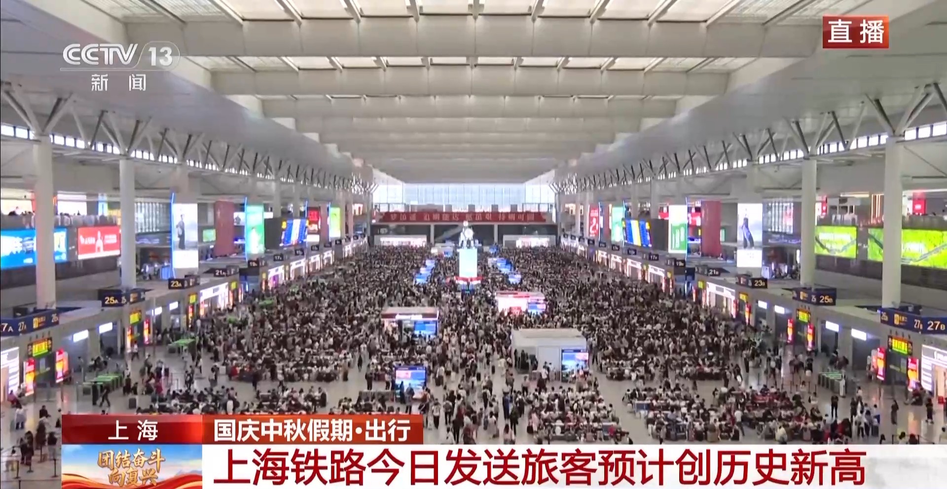 今天(10月1日)是国庆中秋假期首日,上海铁路今天发送旅客预计创历史新高。