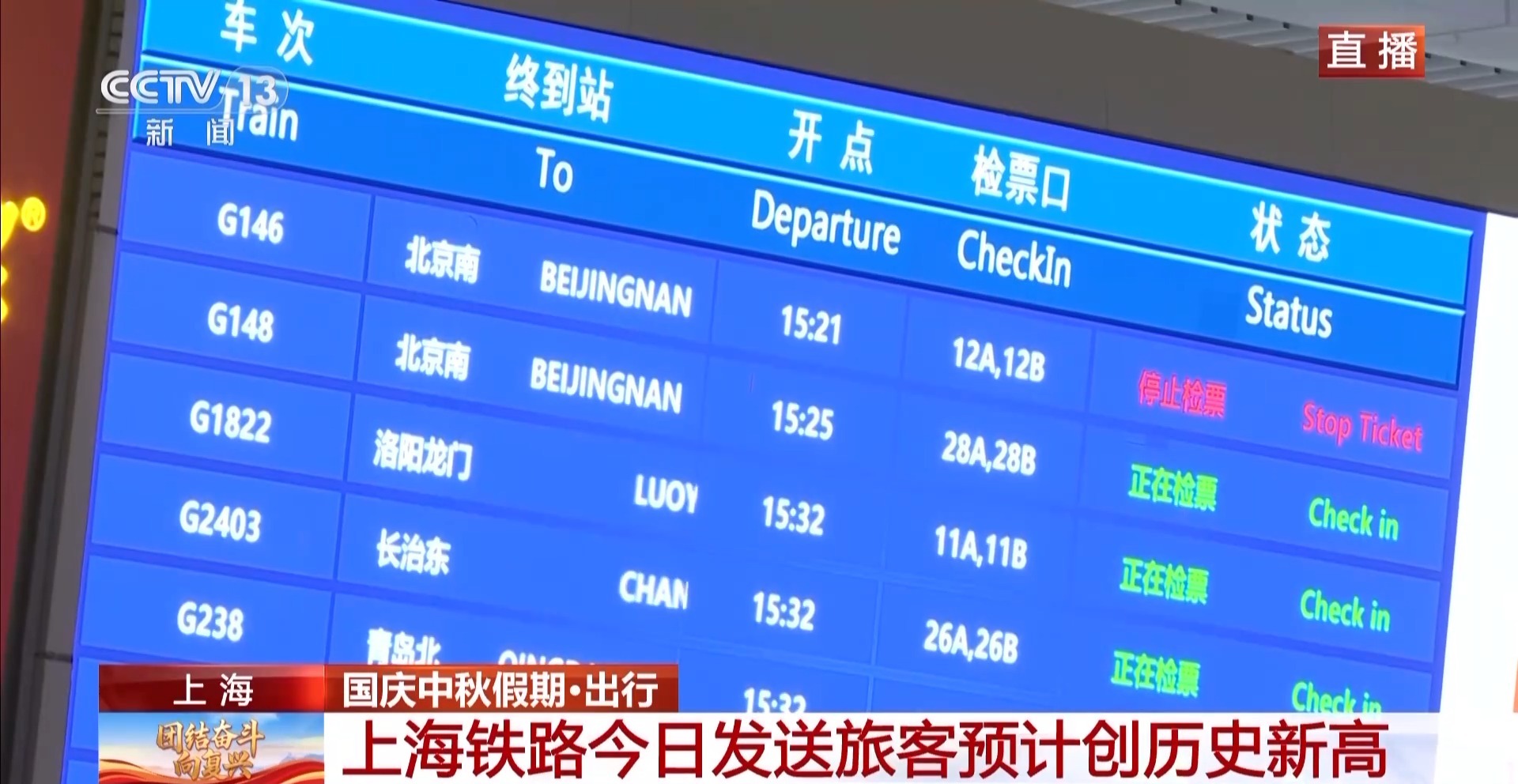 国庆中秋假期首日 上海铁路发送旅客预计创历史新高