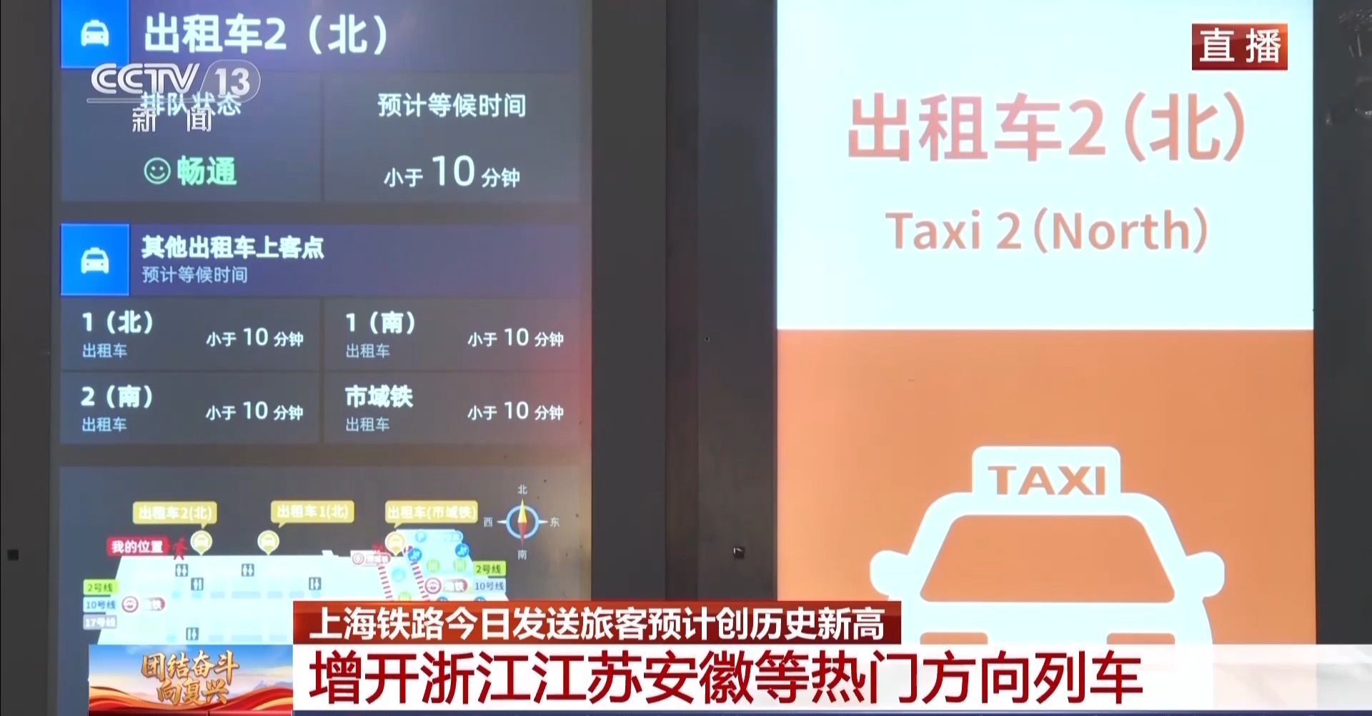 假期期间,上海铁路预计将迎来抵达客流640万人次,同比增长16%。为此,虹桥站几天前专门进行了一番升级焕新,在出租车上客点及停车场入口处,几块全新高清显示屏已安装到位,排队时间、站内位置一目了然。