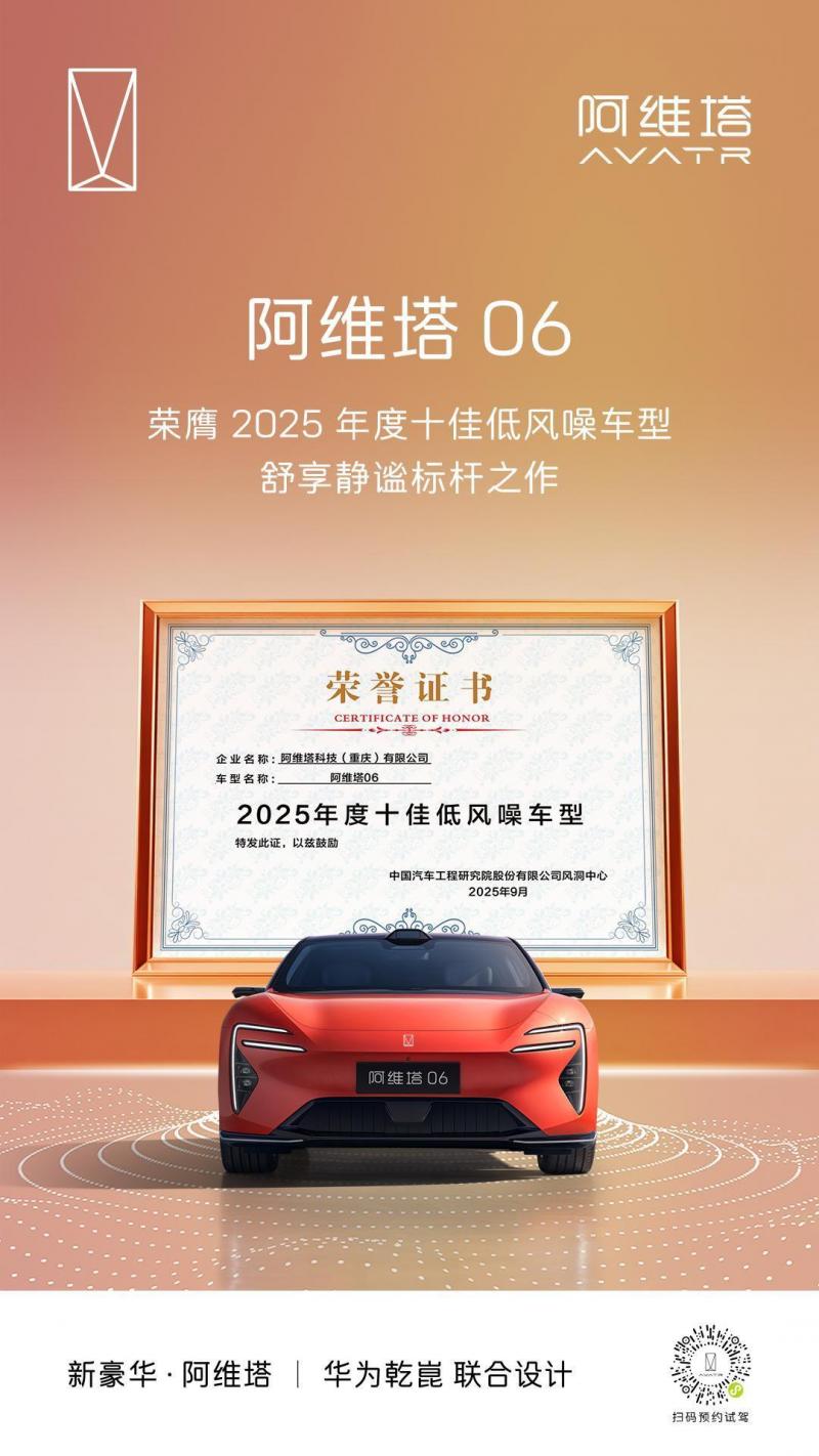 在销量稳步增长的同时,阿维塔还屡获权威机构认证。阿维塔06凭借卓越的空气动力学设计与低风噪表现,荣获中国汽车工程研究院“2025年度十佳低风噪车型”,彰显出色的驾乘品质与NVH技术功底。阿维塔12在2025年中国汽车产品质量表现研究(AQR)中,荣获“高端纯电动车质量体验”第一名。