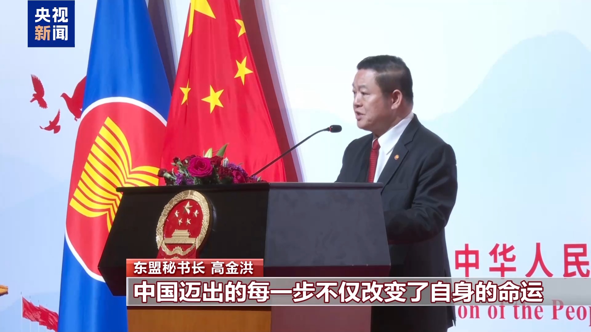 东盟秘书长 高金洪:新中国成立以来,中国迈出的每一步不仅改变了自身的命运,也改变了地区乃至世界的命运。近日习近平主席提出的全球治理倡议,提醒我们合作共赢至关重要,这与东盟包容和可持续的地区愿景高度契合。