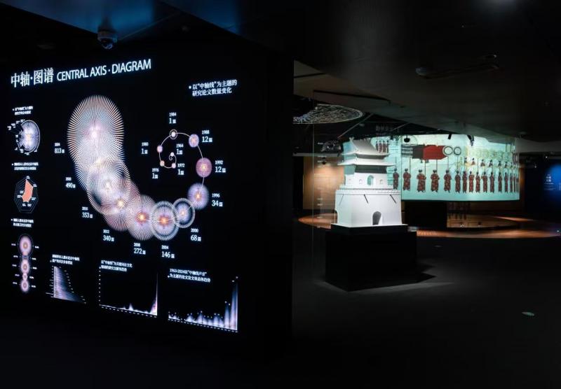 展览通过“天地之中”“礼乐中国”“中西互渐”“守中而进”四大版块,构建起一条从“感知时间”到“理解秩序”,从“文明互鉴”到“未来共创”的叙事脉络,完整呈现中轴线作为“文明活化石”的多维价值。