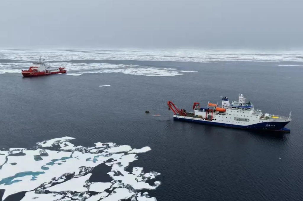 中国大洋92航次第一航段由“深海一号”携“蛟龙”号于2025年7月15日从青岛起航,9月8日返回青岛。在“雪龙2”号极地科考破冰船破冰保障下,本航段在北极海域进行了“蛟龙”号载人深潜、ROV调查和CTD(温盐深剖面仪)采水等作业。