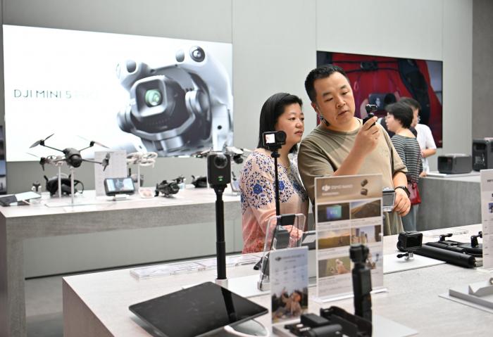 10月2日,顾客在天津万象城选购商品。新华社记者 孙凡越 摄
