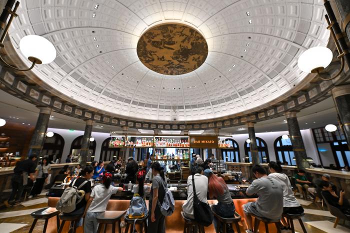 10月1日,顾客在星巴克天津旗舰店内消费。新华社记者 孙凡越 摄