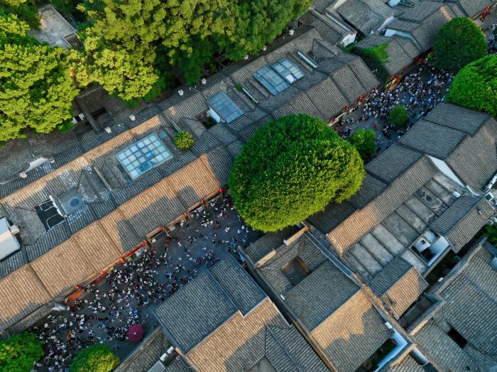 10月2日,福州三坊七巷内游人如织(无人机照片)。新华社记者 姜克红 摄