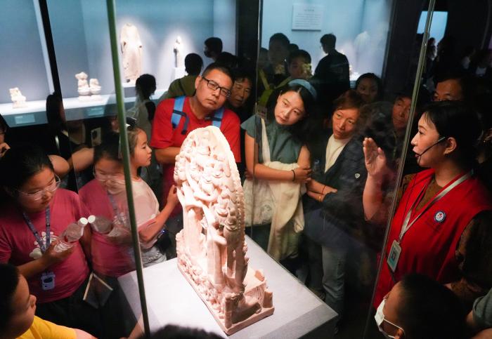 10月3日,游客在河北博物院内观展。新华社发(梁子栋 摄)