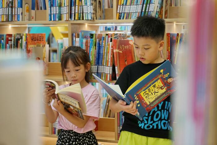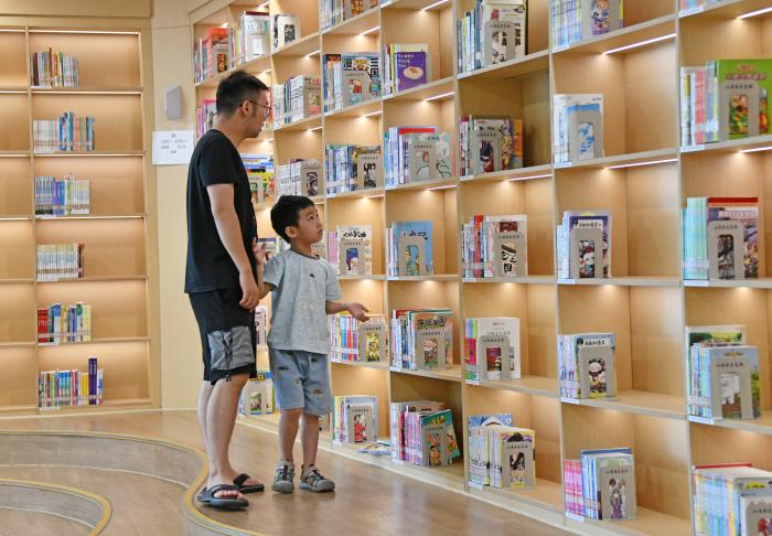 10月3日,小朋友在浙江省嘉兴市南湖区南湖图书馆读书。新华社发(金鹏 摄)