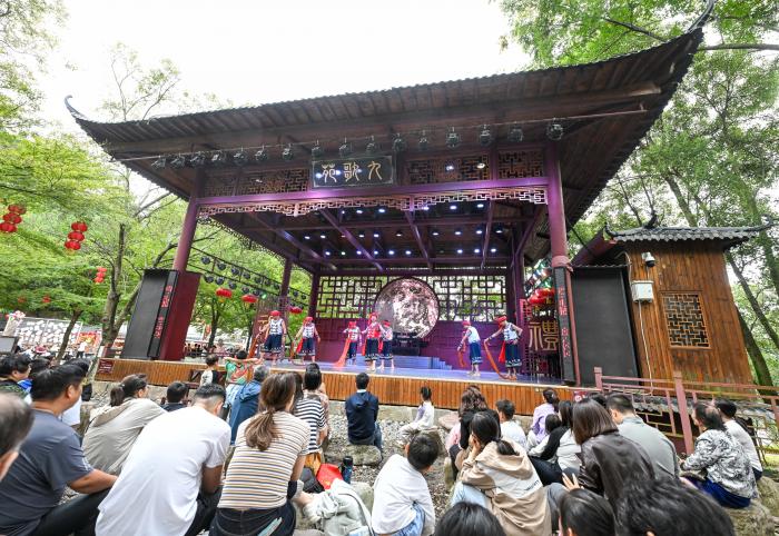 10月3日,人们在湖北省宜昌市秭归县屈原故里景区观看表演。新华社记者 陈晔华 摄
