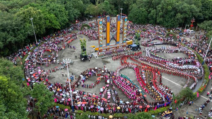 这是云南省德宏州陇川县第十六届(2025年)目瑙纵歌活动现场(10月2日摄,无人机照片)。新华社发(桂金再摄)