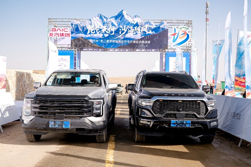 从越野到皮卡,从大巴到旅行车,从燃油、增程再到纯电,北汽集团全程护航本届塔沙徒步挑战赛,展现硬核产品实力。面对沙漠和复杂地形,北京越野和福田皮卡轻松驾驭,作为保障用车全程跟随队伍,提供各项服务。其中,“全场景专业越野SUV”BJ40燃油拥有两纵八横一体式大梁,机械式全时四驱+三把锁,轻松征服沙地、岩石地形,标配2.5吨拖拽资质,是野外救援的强力后盾;“增程硬派SUV之王”BJ40增程支持大功率外放电,自带移动能量站,在赛程途中多个点位进行赛事补给,为队伍提供休息、冷饮、医疗等服务,更打造户外唱吧沙漠火热派对;福田火星皮卡搭载48V柴油轻混发动机,拥有240mm高离地间隙底盘,在实际保障中有效防止了陷沙,提升了爬坡和救援效率,完美支持徒步补给与快速救援……此外,极狐、享界也亮相本届徒步挑战赛,让广大参赛选手体验到越级价值的纯电产品和“人生如旅”的价值体验。