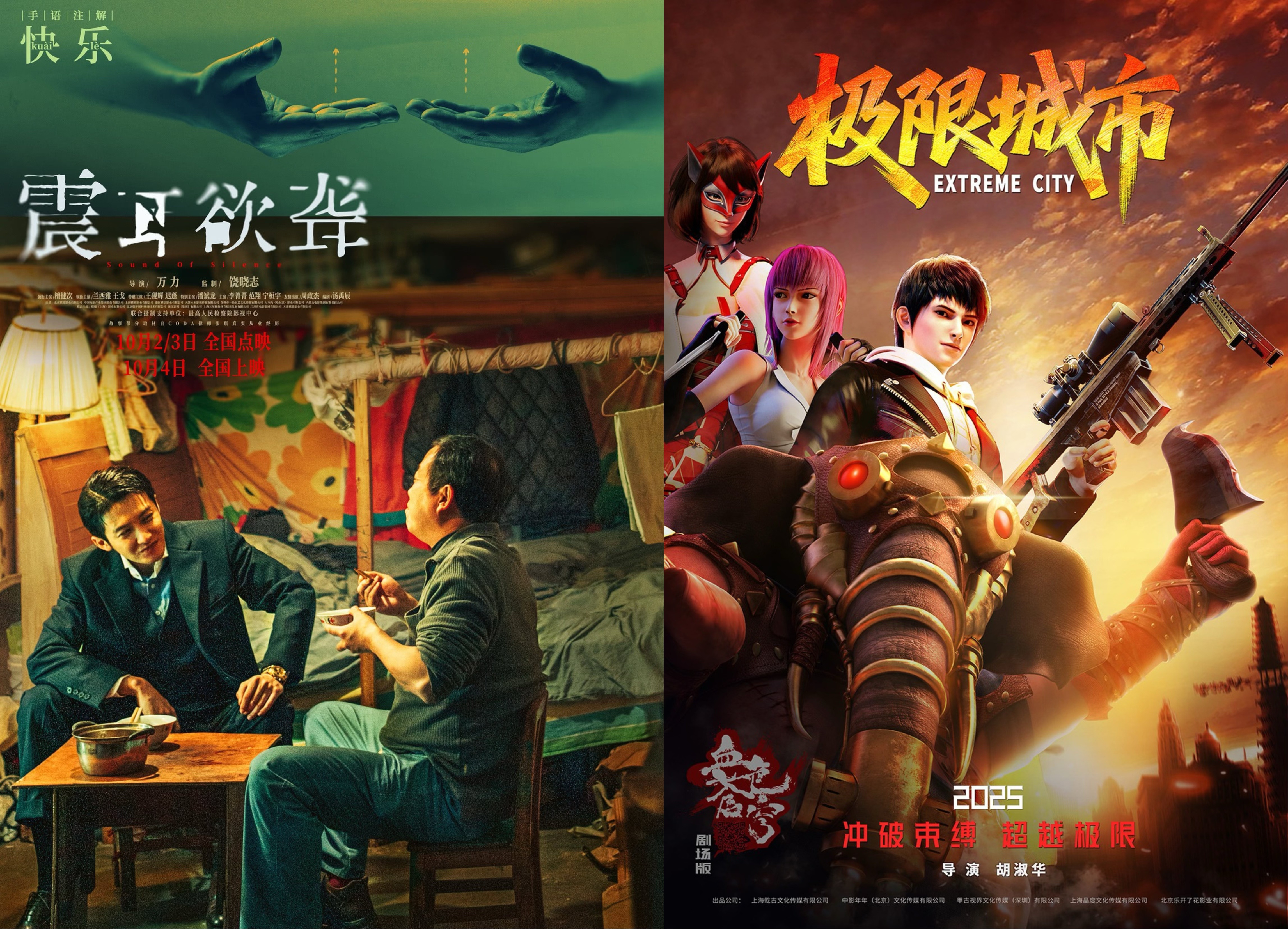 今天(10月4日),剧情片《震耳欲聋》和动画悬疑片《极限城市》两部新片上映。目前2025年国庆档已有多部新片上映,电影种类丰富且精彩纷呈,涵盖历史战争、奇幻冒险、家庭喜剧等。
