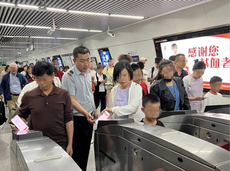 上午10点,出站客流达到峰值。赵磊突然接到通知:“站台有位乘客突发头晕。”他一路小跑赶到现场,只见一位女士脸色苍白,被站务员搀扶着坐在椅子上。“您别慌,我们来处理。”他一边安抚乘客情绪,一边让同事拿水和糖块。待乘客缓过劲来,又帮忙联系家人。“这种情况很常见,我们每个人必须要掌握急救知识,才能第一时间帮到乘客。”赵磊说道。