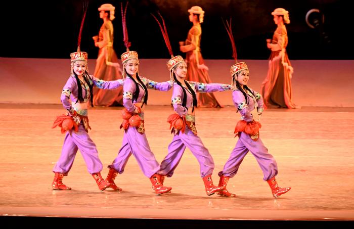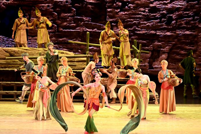 10月3日晚,在甘肃省敦煌大剧院,演员在经典舞剧《大梦敦煌》中表演。新华社发(张晓亮摄)