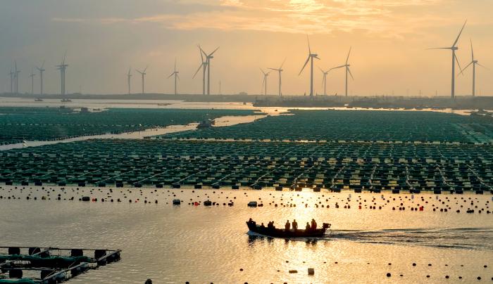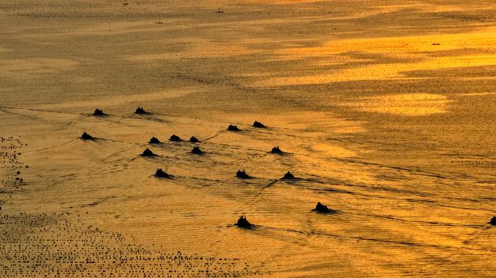 10月4日,在山东省荣成市石岛管理区桑沟湾海洋牧场,渔民出海从事养殖生产。新华社发(杨志礼摄)