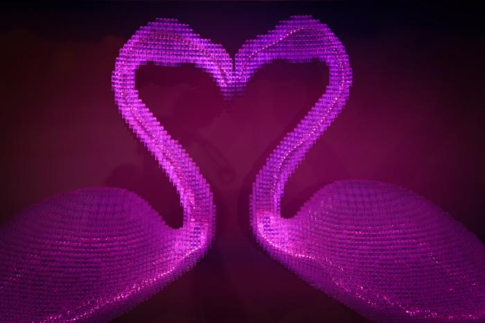 这是10月3日在波兰华沙举行的乐高积木展上拍摄的火烈鸟模型。