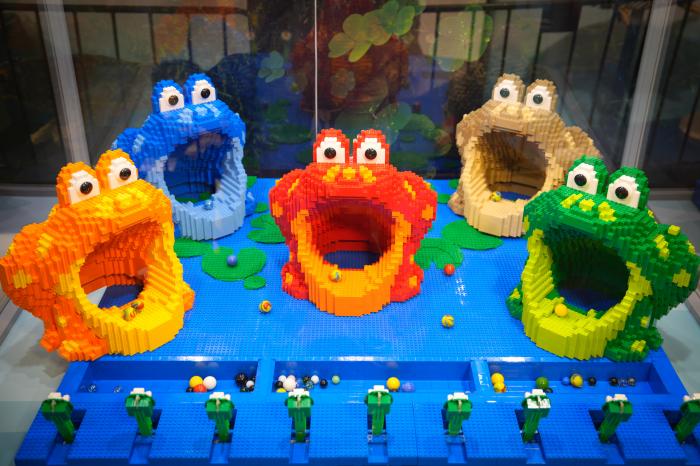这是10月3日在波兰华沙举行的乐高积木展上拍摄的卡通青蛙模型。