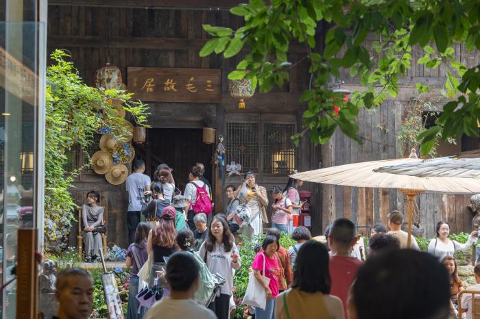 10月2日,游客在重庆市南岸区黄桷垭老街参观三毛故居。新华社记者 黄伟 摄