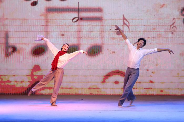 10月3日,在沙特阿拉伯首都利雅得,北京歌剧舞剧院舞蹈演员表演舞蹈《延水别》。